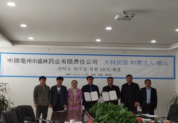 2019年10月31日,安徽盛林国药饮片有限公司与大韩民国Global Herb集团正式签约,开展中药材采购战略合作。安徽盛林国药饮片有限公司总经理高广彬和大韩民国Global Herb集团李运镐,大孝制药负责人朴喜德、大英制药负责人申杰燮共同签署业务合作协议书,标志着双方迈入了围绕中药材的深度合作。
