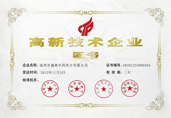 高新技术企业证书