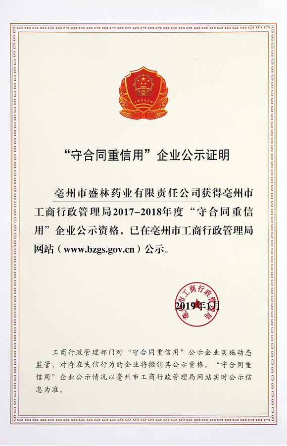2017-2018年度“守合同重信用”企业公示证明