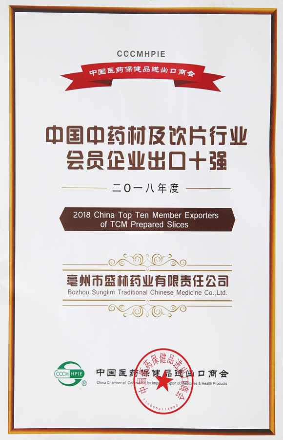 2018年度中国中药材及饮片行业会员企业出口十强
