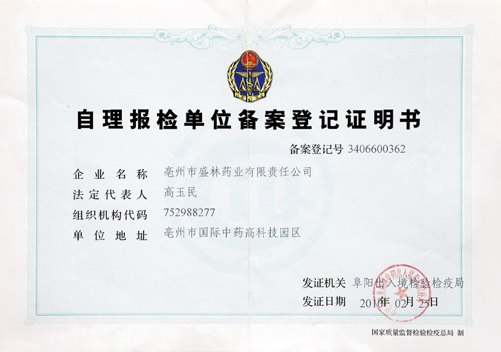 自理报检单位备案证明书