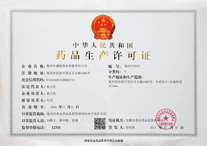 中华人民共和国药品生产许可证