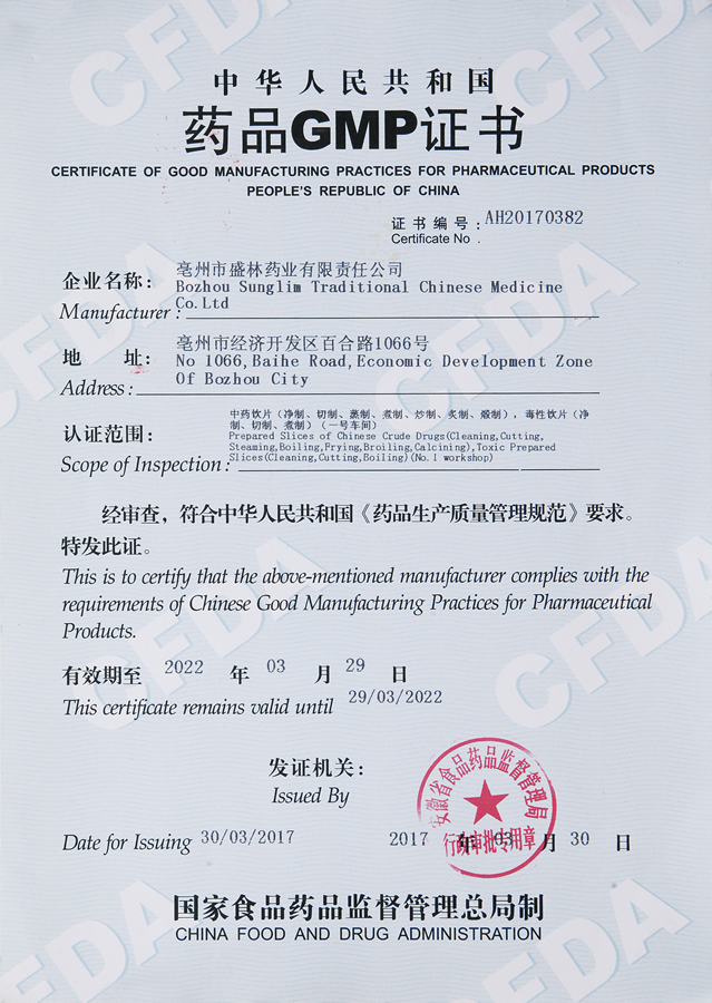 中华人民共和国药品GMP证书